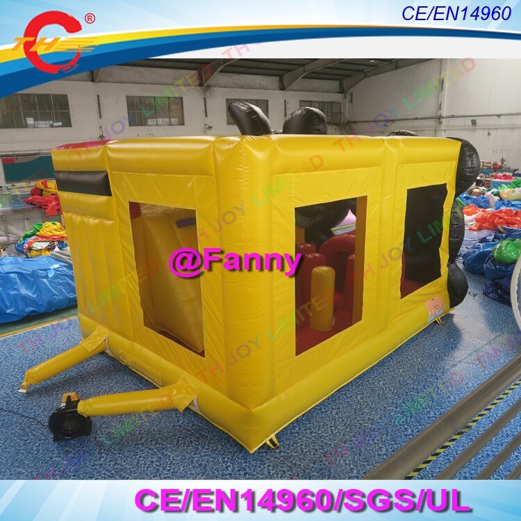 Our inflatable castle showcases a large outdoor inflatable recreation design, featuring a slide for an added rush of adrenaline. It’s ideal for children aged 3 years and above, providing them with a safe and exciting environment to jump, bounce, and slide. The lively color scheme adds to its appeal, making it an instant hit among the little ones.