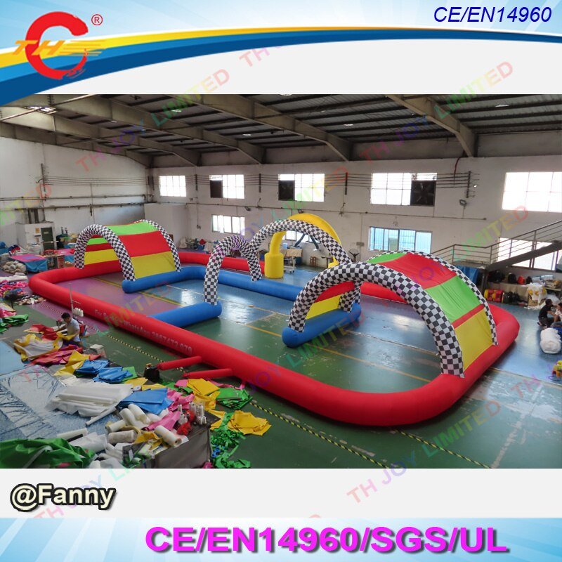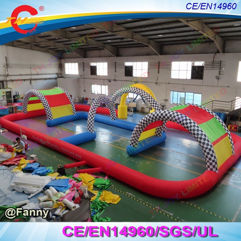 Outdoor Giant Inflatable 20x10m Go Kart Racing Track For Zorb Ball And Race Car Fun