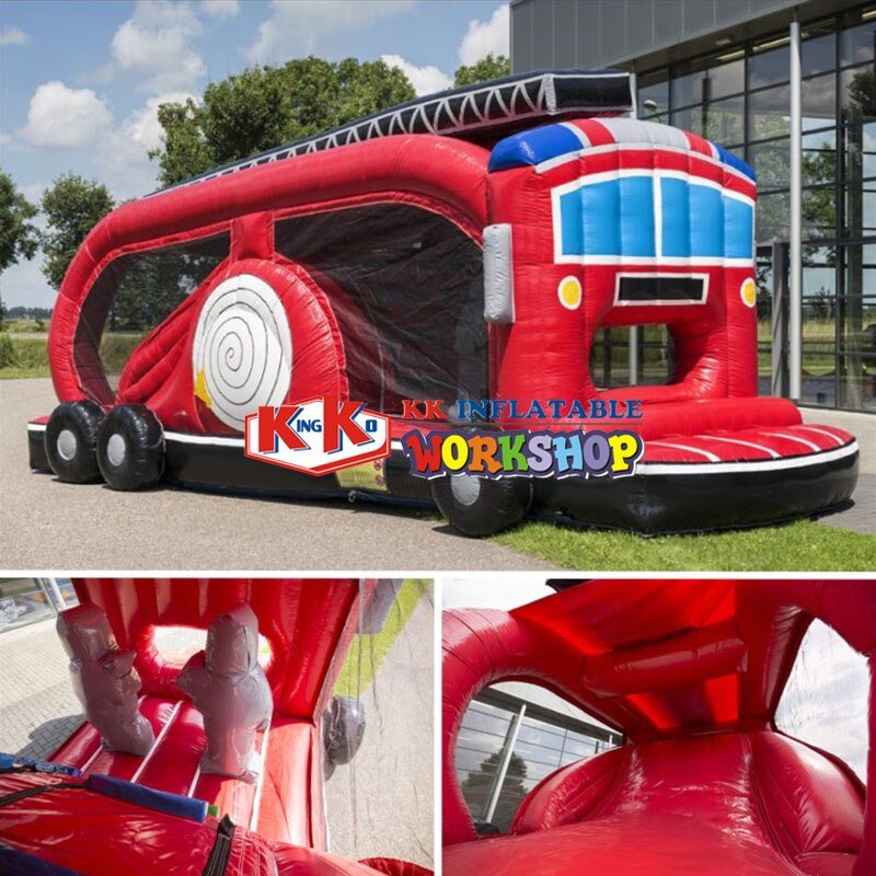 Fire Truck Bouncy Castle Inflatable Trampoline With Unique Artistic Design For Kids Outdoor Fun