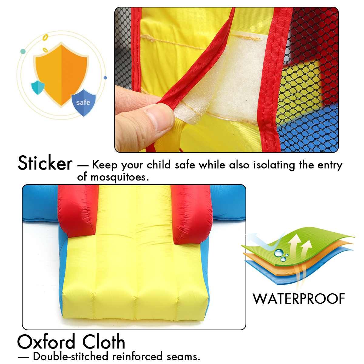Don’t worry about safety; we’ve got you covered. This bouncy castle is constructed with durable Oxford material, ensuring it withstands the rigors of enthusiastic play. Plus, its easy inflation process and secure design ensure your kids can enjoy hours of fun, worry-free.